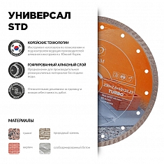Цена и технические характеристики алмазного отрезного круга Diam STD Turbo Универсал 230 мм: