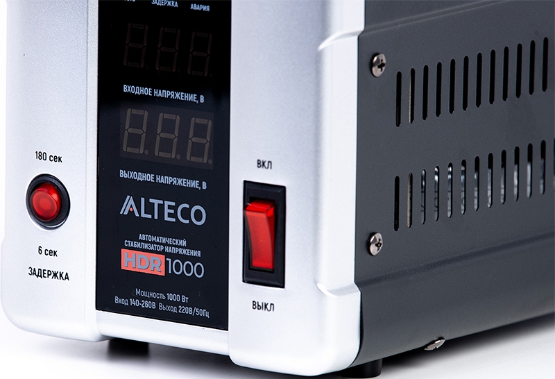Автоматический cтабилизатор напряжения Alteco HDR 1000 (Альтеко ХДР 1000) предназначен для обеспечения стабильным напряжением подключенных к нему устройств. Широко используется в бытовых и промышленных сферах для защиты техники от аварийных скачков электроэнергии.