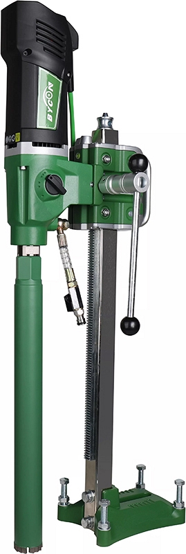 Бесщеточная установка алмазного бурения Bycon Hulk-250B (Байкон Халк-250) предназначена для сверления отверстий Ø до 252 мм в бетоне, железобетоне, кирпиче, камне и других материалах, под углом 90°, с подачей воды, для профессионального использования.