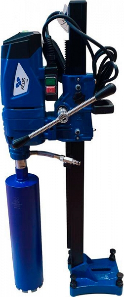 Двигатель для алмазного бурения Keos KS-200 (Кеос КС-200) предназначен для сверления бетона, железобетона, кирпича, асфальта и других твердых материалов алмазными коронками Ø до 200 мм с использованием стойки (штатива).