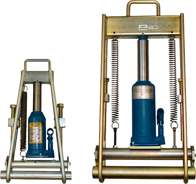 - Труба пережимается 2-мя параллельными штангами, верхняя штанга перемещается домкратом с гидравлическим приводом