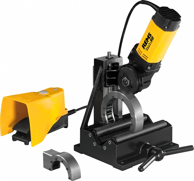 - Rems Центо RF Сет. Труборезный станок, специально предназначенный для быстрой резки под прямым углом труб сварных сточных / спускных труб из нержавеющей стали (EN 1124) Ø 40 – 110 мм. Не требующий обслуживания редуктор, надежный универсальный двигатель 230 В, 50 / 60 Гц, 1200 Вт. Скорость вращения 115 об/мин. Рабочие ролики из полиамида и направляющие Ø 75 и 110 мм. Педальный выключатель. Кольцевой ключ. С режущим роликом RF. Для верстака, станины или передвижной поставки. В картонной коробке.