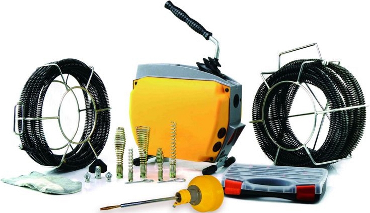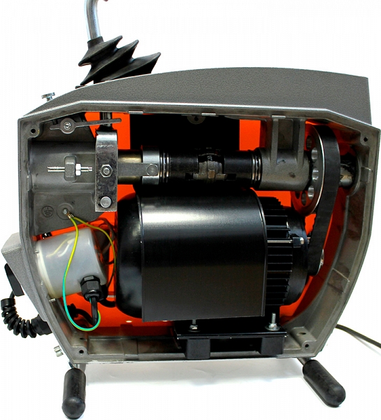 - Мощный индукционный двигатель (750 Вт, 1 л.с.) обеспечивает агрессивный крутящий момент, способный вращать прочистные спирали длиной до 60 м в канализационных трубах Ø до 150 мм