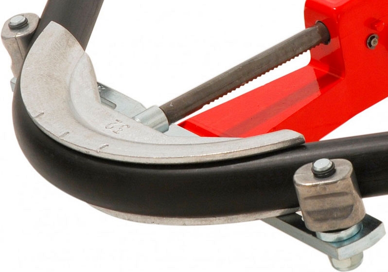 Ручной механический арбалетный трубогиб MGF ALPEM 16-20-26-32 мм (МГФ АЛПЕМ 16-20-26-32 мм) предназначен для гибки медных (в том числе в оболочке) труб Ø 10 – 22 мм, 3/8'' – 7/8'', толщиной стенки до 1 мм; тонкостенных стальных труб Ø 10 – 18 мм, толщиной стенки до 1 мм; металлопластиковых (мпт) и многослойных труб Ø 14 – 32 мм на угол до 90°.
