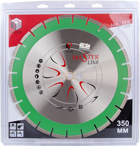 Сегментный алмазный круг Diam Master Line 1A1RSS Гранит 350 мм (Диам Мастер Лайн 1А1РСС Гранит 350 мм) – специальный сегментный алмазный отрезной диск для сухой и мокрой резки гранита, кварца, клинкера, твердых песчаников на бензорезах, электрических резчиках, камнерезных станках, стенорезных машинах, швонарезчиках и другом оборудовании, как с подачей, так и без подачи охлаждающей жидкости.