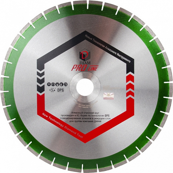 Сегментный алмазный круг Diam Pro Line 1A1RSS Гранит 500 мм (Диам Про Лайн 1А1РСС Гранит 500 мм) – профессиональный алмазный отрезной диск, произведенный по технологии DPS – позиционирования алмазов в режущем слое, для мокрой резки гранита, кварца, твердых песчаников на камнерезных станках, стенорезных машинах, швонарезчиках, с подачей охлаждающей жидкости.