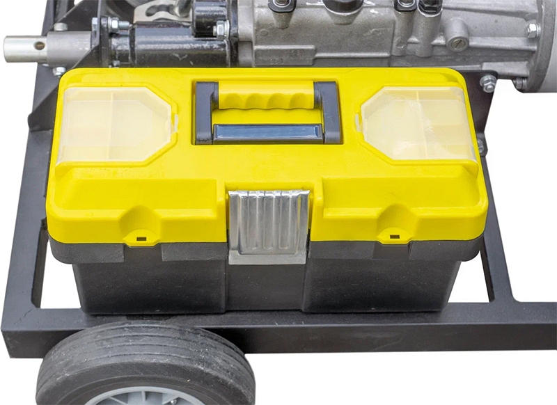 - Большие литые колеса на подшипниках и широкая рама делают очень устойчивой, что очень важно при больших нагрузках на пробивных штангах