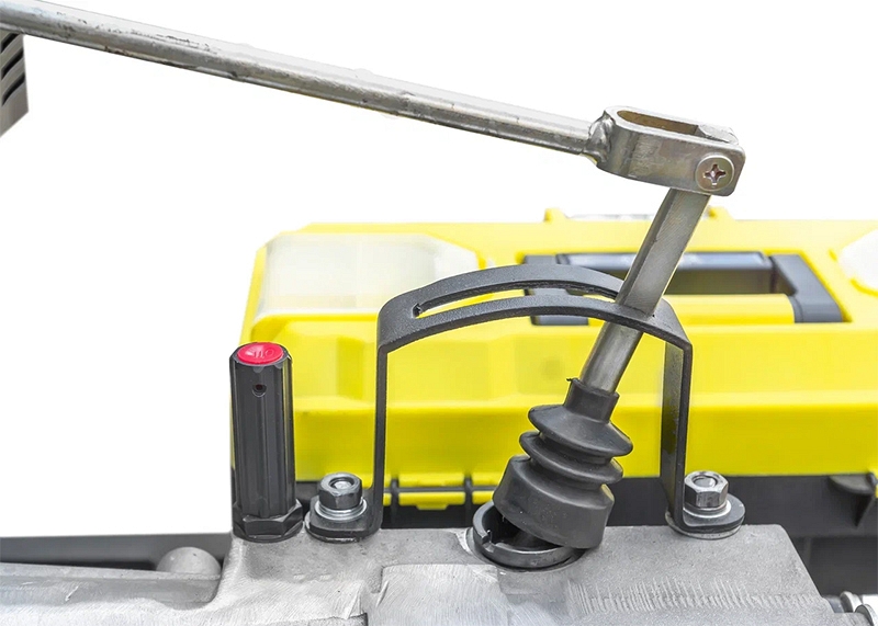 - Приводной вал оснащен системой безопасности при заклинивании и рычагом отключения для безопасной смены пробивных штанг и прочистных насадок