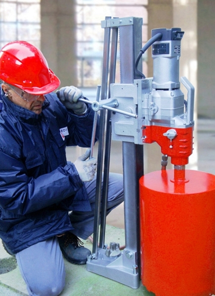 Установка алмазного бурения Cardi 500 (Карди 500) с неимеющем аналогов в мире сверлильным двигателем с 6-ти скоростным редуктором! Имеет широкий диапазон различных скоростей позволяет установить наилучшую скорость для алмазного сверления отверстий! Предназначена для алмазного бурения отверстий Ø 25 – 500 мм в бетоне, высокоармированном бетоне, а также Ø 25 – 600 мм в асфальте, кирпичной кладке под углом 0° – 75° с обязательной подачей воды.
