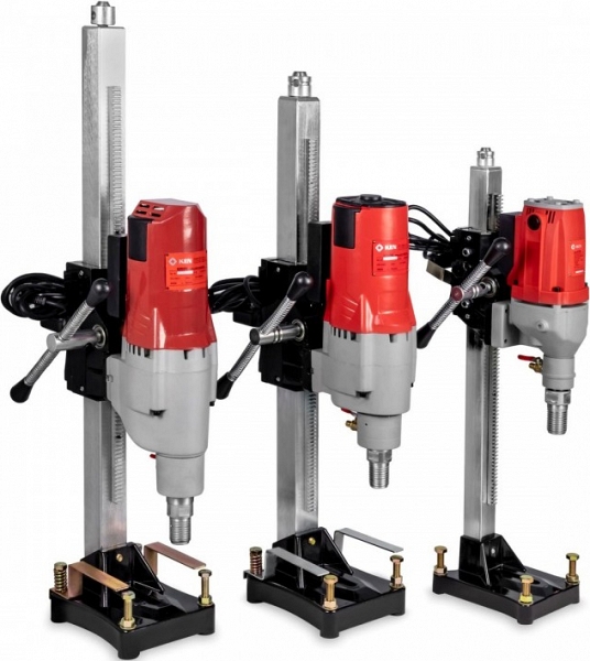 Установка алмазного бурения Ken 6180N (Кен 6180Н) предназначена для сверления отверстий Ø 20 – 180 мм в бетоне, железобетоне, камне, кирпиче и других строительных материалах, вертикально под углом 90°, с подачей и без подачи воды, при прокладке коммуникаций.